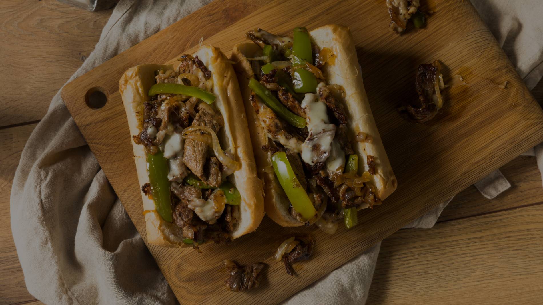 We prepare Philly cheesesteaks with seasoned beef and melted cheese, ensuring we serve rich flavor while maintaining fresh preparation.